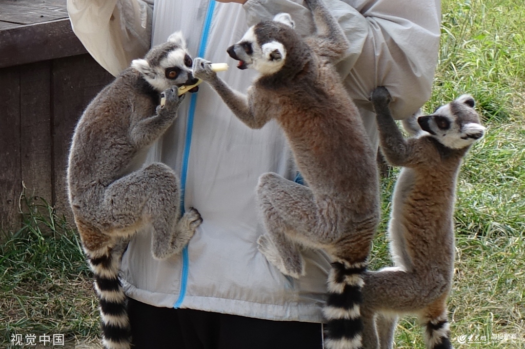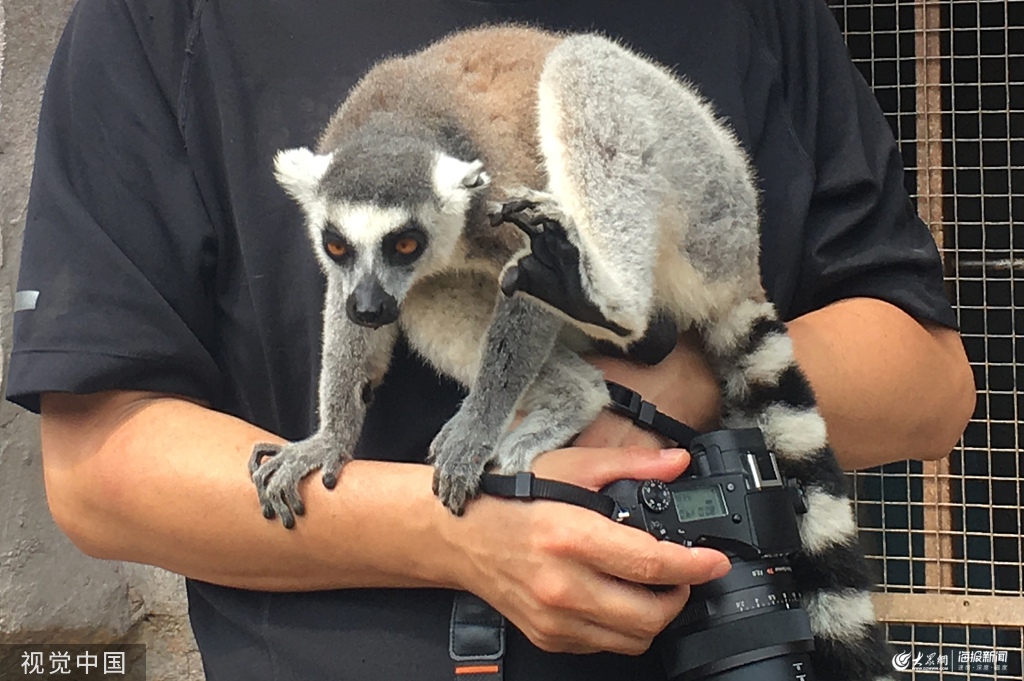 2019年9月6日,山東青島森林野生動物世界,環尾狐猴與游客零距離接觸,場面溫馨,諧趣橫生,令人忍俊不禁。