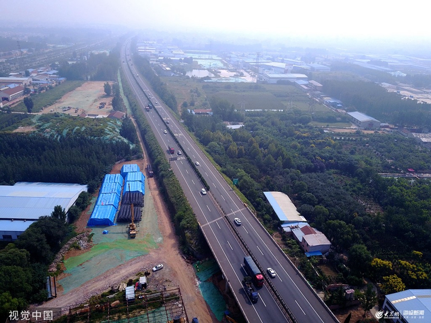2019年9月6日,山東泰安,航拍即將停止通行進行改擴建的青蘭高速萊蕪至泰安段。這條繁忙的高速公路將于近幾日封閉施工,進行大規(guī)模擴建施工。