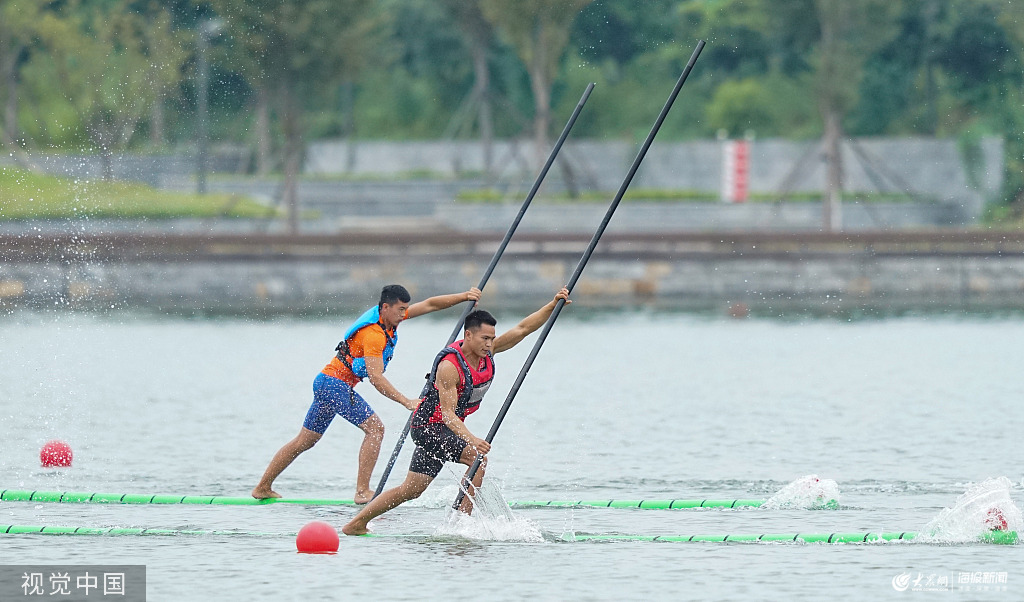 鄭州:全國民族運動會獨竹漂競賽項目開賽 選手演繹“水上漂”