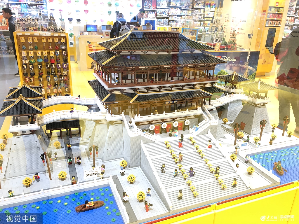 14萬顆積木拼成大唐芙蓉園紫云閣 價值14萬吸引市民參觀