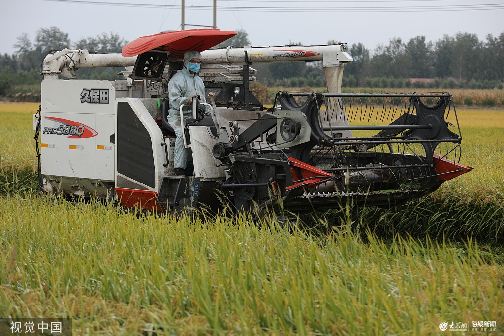 山東日照,在莒縣閆莊鎮(zhèn)張家當門村,稻田中收割機發(fā)出隆隆聲,農(nóng)民正在搶收稻谷,豐收的喜悅彌漫著淡淡的稻香,農(nóng)民載歌載舞,歡歡喜喜慶豐收。