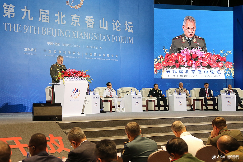 2019年10月21日,第九屆北京香山論壇在北京國(guó)際會(huì)議中心開幕,俄羅斯國(guó)防部長(zhǎng)紹伊古演講。