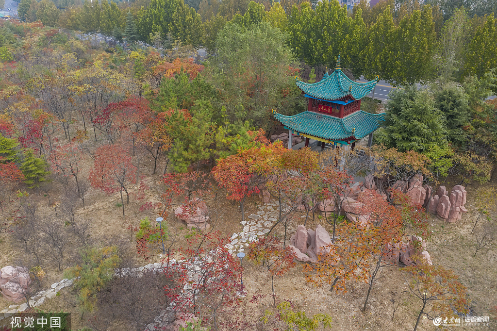 2019年10月24日,山東濱州,新立河公園兩岸紅葉進入最佳賞葉期,秋意濃濃。