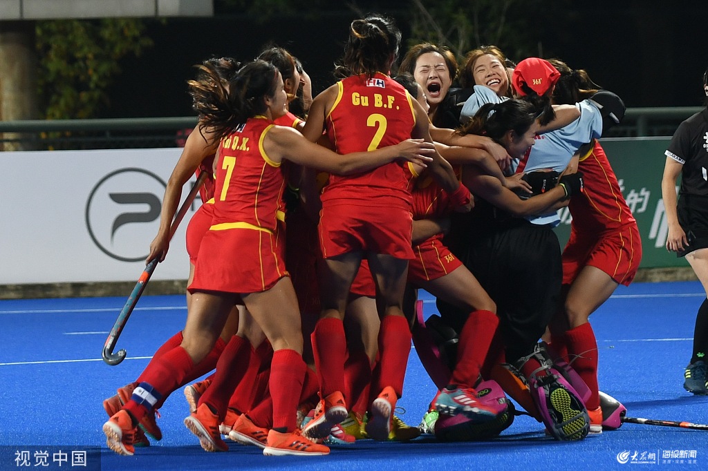 2019年10月26日,江蘇常州武進曲棍球訓練基地,2020年東京奧運會女子曲棍球預選賽中,中國女曲通過23米球大戰戰勝比利時隊,獲得東京奧運會參賽資格,連續6屆入圍奧運會。中國隊也是第一支獲得東京奧運女子曲棍球資格的球隊。圖片作者:史康/視覺中國
