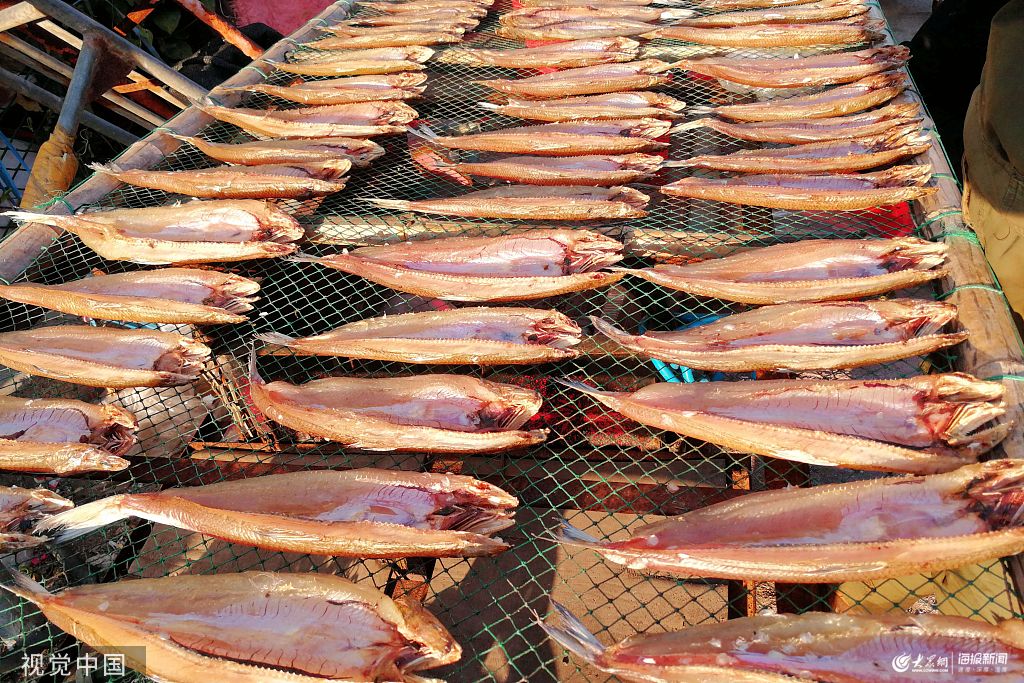 2019年10月,金秋時(shí)節(jié),山東青島西海岸新區(qū)積米崖漁港,一些漁民開(kāi)始晾曬魚(yú)干。漁民們先將新鮮的海鮮魚(yú)清理干凈,用食鹽腌漬一個(gè)小時(shí)后左右,再用清水沖洗干凈,就可以平鋪在漁網(wǎng)上或者掛起來(lái)晾曬。晴好天氣晾曬的魚(yú)干干凈整潔,帶有海鮮特有的清香。晾曬魚(yú)干是過(guò)去漁民在海鮮沒(méi)法保鮮時(shí)創(chuàng)造出來(lái)的一種保存方法,現(xiàn)在成了漁民對(duì)過(guò)去生活的一種追憶,甜美的魚(yú)干也吸引了不少市民和游客前來(lái)購(gòu)買(mǎi)。