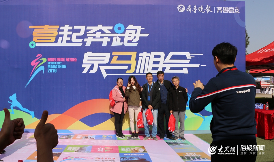 大眾網·海報新聞濟南10月30日訊(記者 儀首歌)30日,距離11月2日開跑的2019泉城(濟南)馬拉松還有三天,馬拉松博覽會在濟南奧體中心南廣場開幕,本屆泉馬參賽選手在這里領取號碼布和賽事參賽包等物品。據悉,本次博覽會將持續3天,參賽選手可從10月30日持續到11月1日(上午九點半到下午6點)領取參賽物品。圖為參賽選手在有“泉馬”標志的廣告牌前合影留念。