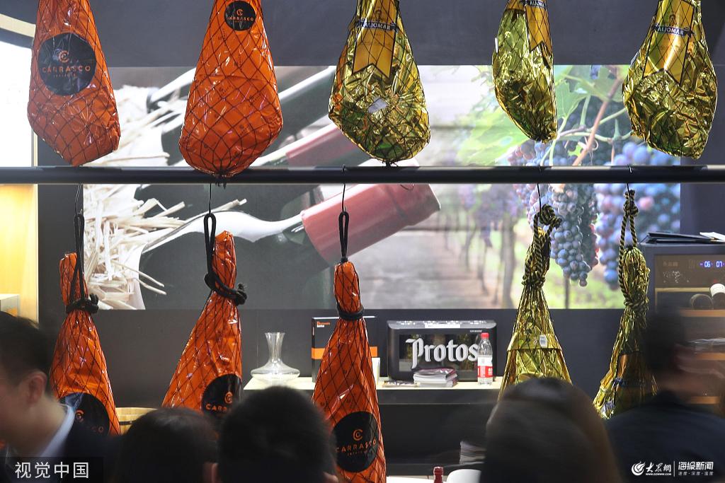 2019年11月8日,第二屆進博會正在上海國家會展中心舉行。在食品展區,由米其林廚師推薦的西班牙火腿受到食客追捧。