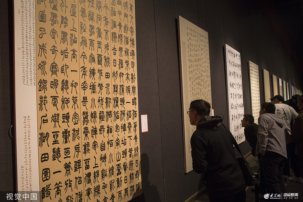 濟南,山東美術館正在展出的“全國第十二屆書法篆刻展覽篆書篆刻刻字展”吸引廣大書法愛好者。