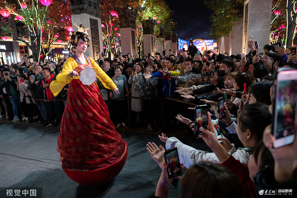 大唐不夜城“真人不倒翁”成網(wǎng)紅 吸引游客前來握手