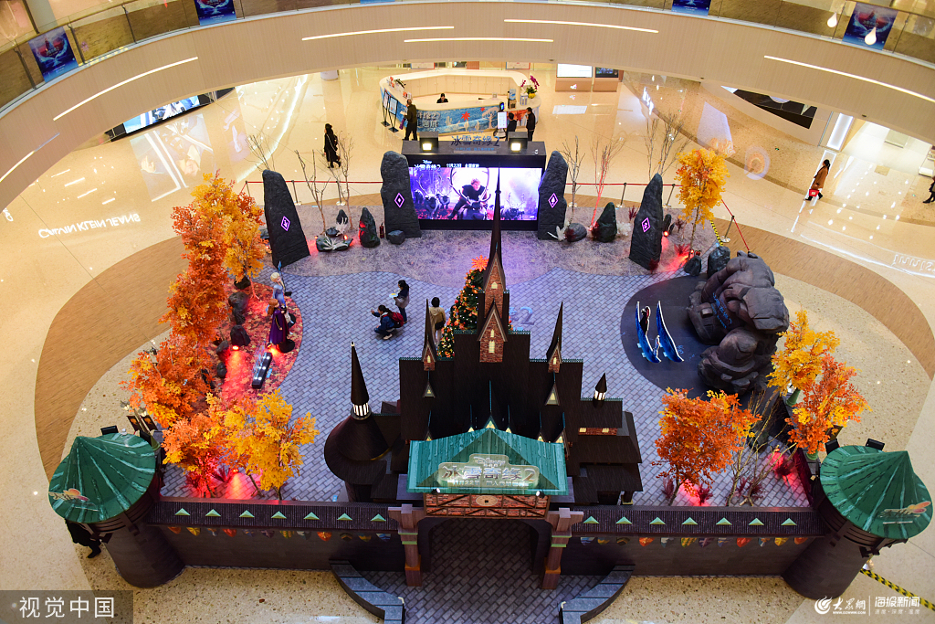 江蘇蘇州,《冰雪奇緣2》電影主題展在蘇州龍湖獅山天街展出。