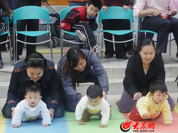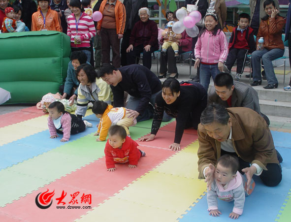 大眾網4月9日訊 近日,二七新村街道辦事處建南社區計生協在世紀家園北門舉行了一場別開生面的計生早教宣傳活動,通過舉行寶寶爬行大賽、發放宣傳材料,廣泛宣傳早期教育知識及新型生育文化。 寶寶爬行大賽吸引了社區內80個家庭的小寶寶參加,其中年齡最小的才7個月。比賽中,寶寶們各展絕活“奮勇前進”,逗得現場觀眾笑聲不斷。活動現場,擺放著各類宣傳掛圖,社區工作人員向居民發放了宣傳資料500余份,內容包括政策法規、早期教育、優生優育等方面。(王曄)