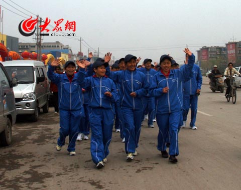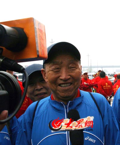 來自濟南染織廠的退休職工牛玉明老人是長跑隊中的年齡最大的一個,他向我們介紹,退休后,自己就時常和老工友約好出來跑跑步做做運動,牛老說:“現(xiàn)在我的身體條件很好,相信從濟南跑到北京沒有問題。雖然我是長跑隊中年紀最大的一個,但一定會堅持到最后,把咱濟南市民對08奧運的盼望和祝福帶到北京。據(jù)了解,“迎奧運,跑向北京”長跑活動的31名隊員平均年齡56.3歲。