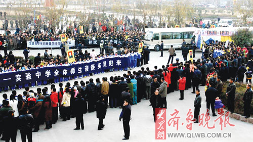 12月6日,齊河縣數(shù)萬(wàn)名群眾在寒風(fēng)中迎接孟祥斌英靈回家。 本報(bào)記者 周青先 攝