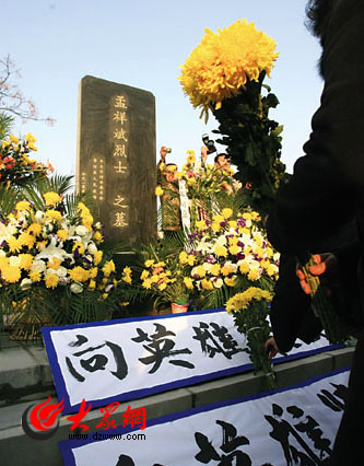 霜染大地,寒氣襲人。上午10時,孟祥斌烈士追悼會在齊河縣劉橋村舉行。下午1時30分,英雄的骨灰被送往齊河縣烈士陵園安葬。
