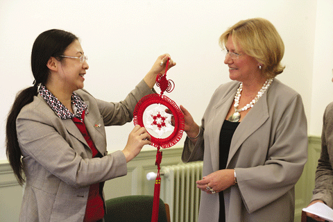 斯特林格教授聽說我們從山東來,很爽朗地笑了。她說:“我也是‘山東人’,我們是老鄉。山東是我的第二故鄉,我去過很多次。”