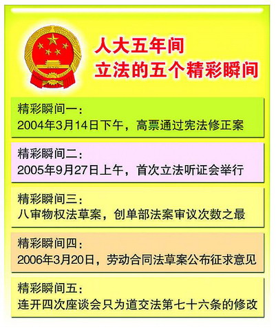 身為十屆全國人大代表的王利明,是這五年中國立法的參與者、親歷者,也是這五年中國特色社會主義法律體系從“初步形成”到“基本形成”的歷史進程的見證者。他見證了五年里十屆全國人大及其常委會審議、通過的100余部法律案。其中,除了物權法這樣的典范之作外,還有更多關懷“民生”、守護“民權”的立法。