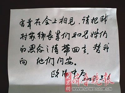 歐陽中石寫下思鄉語問候鄉親。 張洪波 攝