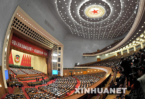 3月13日,全國政協十一屆一次會議在北京人民大會堂舉行第四次全體會議,選舉十一屆全國政協主席、副主席、秘書長和常務委員。新華社記者宋振平攝