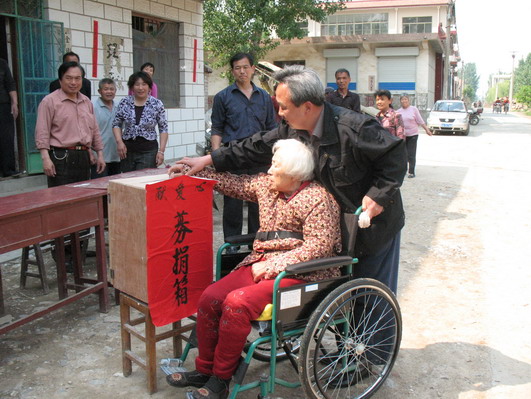 5月20日,在長清區(qū)老年大學內(nèi)設置的捐款箱前,很多人都自覺的排隊向災區(qū)人民捐款,秩序井然。忽然,捐款的和接收捐款的人爭執(zhí)起來,立刻吸引了大家的注意。原來百貨公司的退休老干部馬萬義一家十口,子女大都下崗,沒有正式工作,生活并不寬裕,聽說四川地震,馬萬義老人拿出自己月工資的一半(700元錢)捐上,身旁的人了解他情況的人勸他:你們家也挺困難的,就少捐一點吧。馬萬義老人說,我有剩下的700塊錢這個月就能過,但災區(qū)的人民有的還吃不上飯,他們比我更需要錢。