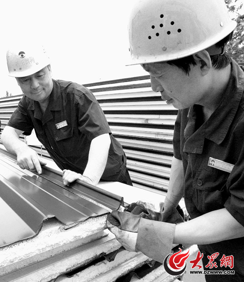□記者 湯序民 報道 5月26日,鄒平縣西王集團鋼構有限公司的職工加緊生產(chǎn)彩鋼板(上圖)。為了讓四川綿陽地區(qū)的受災群眾早日住進安置房,該公司干部職工加班加點,晝夜生產(chǎn)。 |