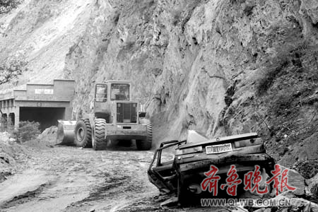 20分鐘后,我們離開理縣,直奔汶川。路邊被砸中的車輛也明顯增加,危險路段也是越來越多,而每一個危險路段都有地方領導在盯著,一旦有塌方就緊急施工,保證這條救援生命線的暢通。