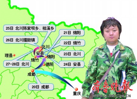 本報記者張洪波災區采訪路線圖