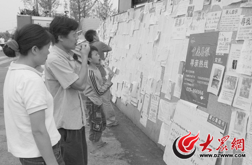 特派記者 湯序民 報道 綿陽九洲體育館受災群眾安置點設立了一面“尋人墻”,上面貼滿了尋親留言或尋人啟事,當地的報社和電臺也專門開設了尋親熱線,幫助在地震中走散的家人尋找親人。