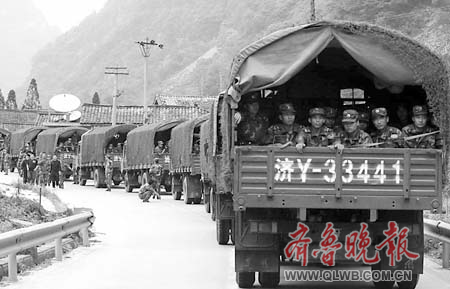 濟南軍區(qū)是救援大軍中的重要力量。 本版照片均為本報救援報道特派記者 周青先 攝