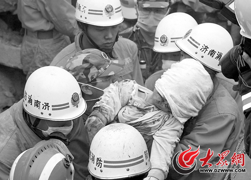 5月16日18時(shí)58分,濟(jì)南消防官兵成功救出被埋壓100個(gè)小時(shí)的女孩尚婷。