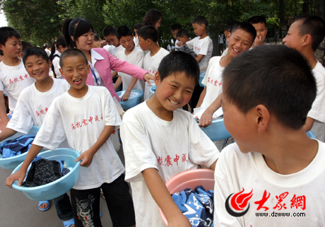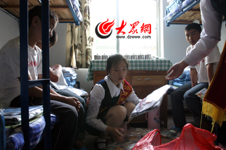 吃完早餐,孩子們來到了自己的“新家”。8個人的房間,既干凈又整潔。床上擺放了嶄新的用品。據學校負責人介紹,他們?yōu)槊恳粋學生配備了床上用品、日常用品、服裝、文具等四大類49種物品。記者注意到,光鞋就有涼鞋、拖鞋、運動鞋三種,連風油精、紅領巾等也在發(fā)放之列。 雖然坐了36個小時的火車,但孩子們沒有疲憊之意,一舉一動傳遞著興奮和激動。“一到濟南站,就看到很多老師和學生迎接我們,非常熱情,很激動,挺高興的”六年級四班的劉坤說。“很高興,很幸福,因為我們又可以上學了”,12歲的唐輝堯高興之情溢于言表。