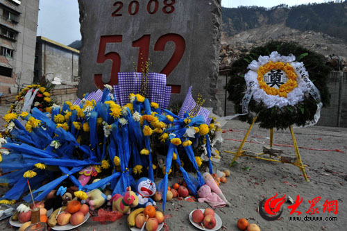 北川城遺址內祭奠的北川人