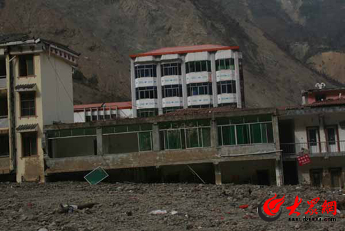 地震后的樓房又被泥石流掩埋