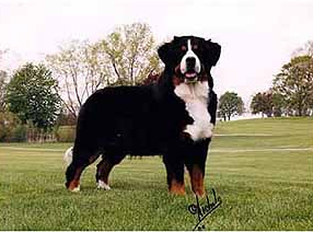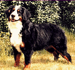 伯恩山犬是一種具有震撼力的品種。三色、長腿。他堅定而和諧。他很聰明、結實且靈活,在山區足以勝任象拖曳或趨趕畜群這樣的工作,這也是這一品種的起源。公狗顯得雄壯、母狗則顯得柔和。