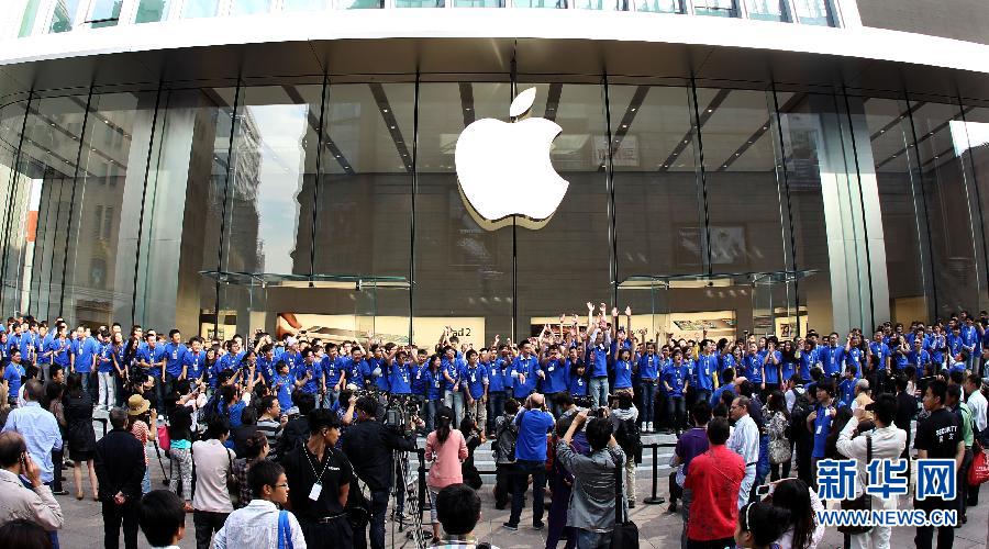 9月23日,蘋果零售店工作人員在門外歡迎“果粉”。當日,亞洲最大蘋果零售店Apple Store在上海南京路步行街開門迎客。據了解,今天開張的新店是蘋果在中國大陸的第五家零售店,也是蘋果在上海的第三家零售店。 新華社記者凡軍 攝