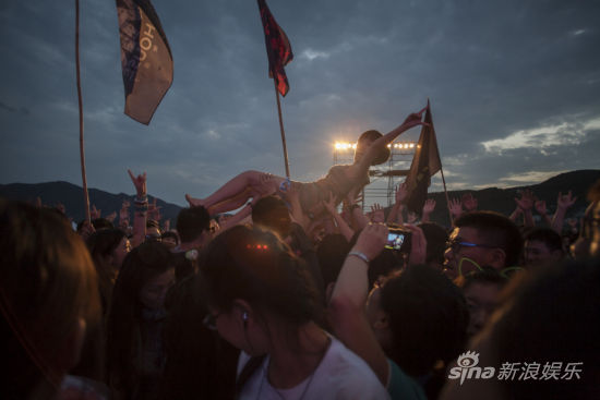 傍晚,木瑪&Third Party樂隊用最大汗淋漓的音樂和舞步撼動了全場樂迷,主唱木瑪從臺上跳到臺下,前排女樂迷們的瘋狂尖。