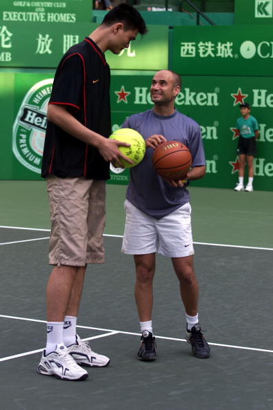 圖8網壇巨星阿加西與姚明合影