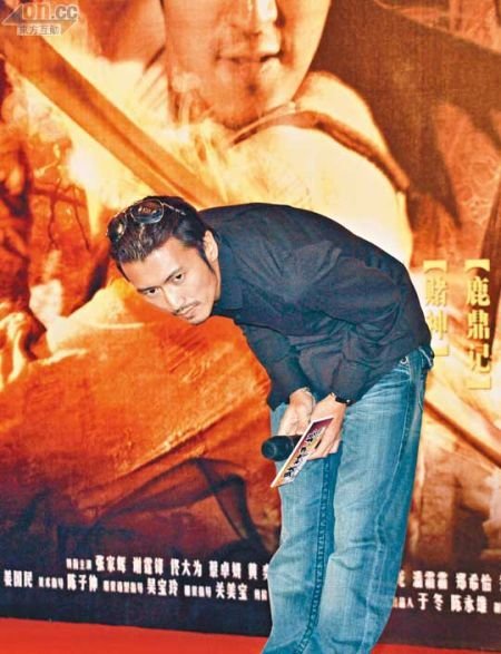 謝霆鋒現(xiàn)身北京出席新片記者會。