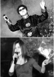 “關之琳”的登場果然沒有讓觀眾失望,她穿著一條長裙,頭發依然是廣告片中的清爽短發,亮麗的容妝、雍容的笑容,這個“關之琳”曾經因為外貌酷似明星的緣故早已多次參加模特大賽、形象大使大賽,并且多次在報紙上“露臉”。雖然長相上已經占了優勢的“關之琳”很被人們看好,不過不知道演技如何,還是很讓觀眾捏了把汗。一張口,居然是地道的粵語,低沉的女音很是好聽。雖然熟悉關之琳的觀眾對于她的演技很贊賞,不過這次聽到“關之琳”的動人歌聲,大家還是覺得喜出望外。自然這個“關之琳”也逃不過追星族的圍攻,早被燈光照得無處可逃。