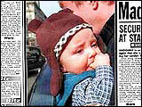 英國《太陽報》“神通廣大”,讓大家有緣一睹麥當娜之子——8個月大的小羅科(Rocco)的模樣。在麥當娜的森嚴警備下,除了羅科受洗時遠遠的驚鴻一瞥,就再也沒有“狗仔”能捕捉到她的小兒子了。 這張照片是《太陽報》的狗仔大隊在他們夫妻倆帶著兒子逛紐約大街時拍到的。當天天清氣爽,蓋·里奇抱著頭戴毛帽、身穿最流行小背心的小羅科,正要過馬路去跟孩子的娘會合。而麥當娜正在另一家百貨公司,搶買打折的嬰兒用品。 麥當娜為了兩個小孩的安全,在倫敦住家加強了近百萬美金的保全系統,要想再拍到他們一家子的情況,將會難上加難。 麥當娜在倫敦的豪宅,在住進去10個月內,便接連慘遭2次小偷光顧。一次是去年6月,她的信用卡和皮夾、鑰匙被偷;一次是去年12月,蓋·里奇的獵槍、跑車和3臺計算機也失蹤。 因此她不僅斥資百萬閉路電視一堆的保全系統,還決定隨時跟換房間睡覺(這棟5層樓房共有6間臥室),以混淆不肖分子的視聽。