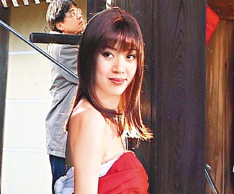 當日阿梅于京都大國寺取景,凌晨五時就開始化妝梳頭,七時多到達外景場地準備拍攝,由于之前一直落雨,令天氣更加寒冷。為免涼,阿梅披上厚厚之外套,猶如一只棕子,加上路面濕滑,阿梅穿著長長的晚裝,可謂寸步難行,需要數(shù)位工作人員扶著慢慢行。