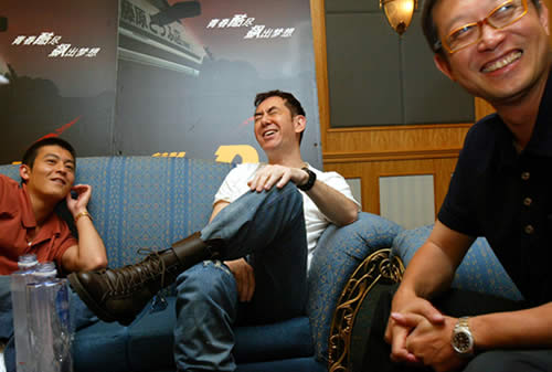 黃秋生:我覺得主要是市場定位非常明顯,所以推廣的時候非常容易。其次是導演,導演拍這種戲是非常拿手的,(劉偉強瞪了他一眼:“這種戲?”秋生馬上改口)其實他拍什么都可以,只是這種類型最拿手!(向劉偉強使了個眼色:這下沒錯吧。)還有就是演員的表演非常適合,還有劇本,他把這個漫畫改成電影,還有最重要的是車,日本那些車手對這部電影幫助非常大,非常專業,他們技術非常好。其實真正的主角是車,不是我們,車是導演拍出來的,所以真正的主角是導演。