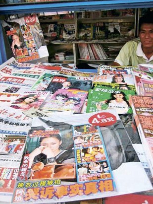 在北京建國門外一個報攤的老板指“雜志挺好賣,網(wǎng)上炒作得很火”。