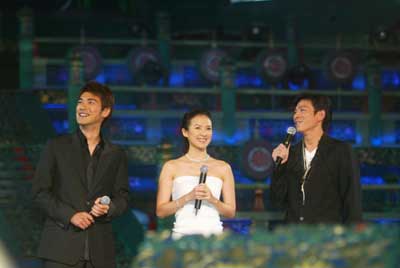 這位有著中日血統的超人氣帥哥也是全場觀眾最為期待的人。而他的到來也為本次首映式吸引來了日本等亞洲各國的記者前來,但令人遺憾的是,他并沒有在現場演唱歌曲或表演任何節目,只是在節目開始時與張藝謀、劉德華、章子怡以主持人的身份出現了十幾分鐘。但更令現場觀眾不滿的是,當他出現在舞臺上時,大屏幕一直沒有給這位帥哥任何鏡頭,出現在里面的一直都是章子怡,現場有的觀眾實在忍不住高呼要看金城武,才讓攝像機給了他特寫鏡頭。