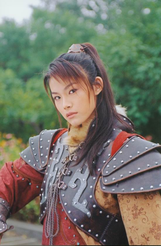 記者:看到你身著一身盔甲的英武姿態,真嚇了一跳,沒想到那么斯文的女孩子也會演起粗魯非常的女寨主。先說一下你這部處女古裝電視劇的拍攝感受?
