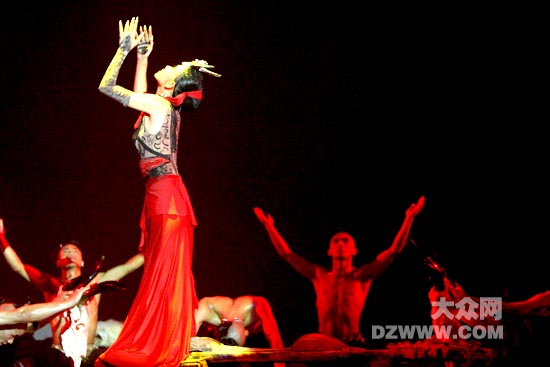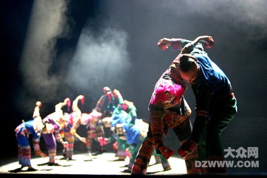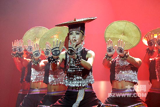 8月6日至8日,楊麗萍帶領她的舞蹈團在濟南山東會堂上演了大型原生態歌舞集《云南映象》,將云南地區的少數民族歌舞藝術帶給了泉城觀眾。第二場演出正是亞洲杯中國與日本決賽直播,但是依然沒有影響《云南映象》的上座率。本站特別整理了《云南映象》的歌舞圖片,使沒有觀看表演的人們一樣可以感受它的藝術氛圍。(攝影/楊博 制作/劉云)