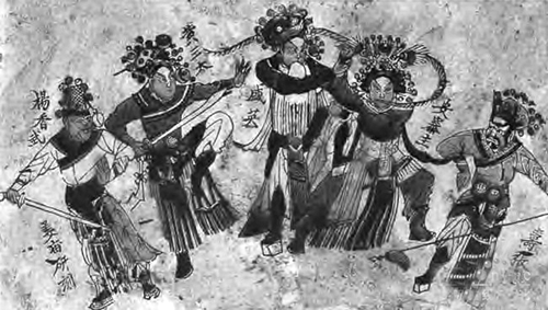 “同濟祥”字號作坊開設于莘縣的古城鎮。故稱“范縣同濟祥”,作坊主人是牛建寅、牛星柱。主要印制神碼、門畫、扇面、窗畫、墻畫等,版畫銷往黃河以南鄆城、嘉祥、濟寧、曹州、南樂、清豐、長垣等地,還遠銷安徽的徽州、蚌埠等地。“同濟樣”的扇面畫以戲曲舞臺人物為主,人物造型生動傳神,十分精彩。
