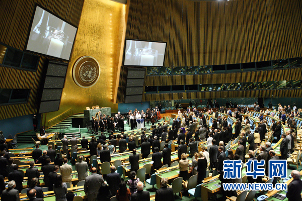 9月9日,與會者在紐約聯合國總部舉行的紀念“9·11”十周年活動上默哀。 聯合國當天舉行活動,紀念“9·11”恐怖襲擊事件十周年。新華社記者朱煒攝