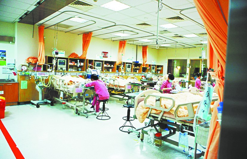 28日,工作人員在嘉義市圣馬爾定醫院的加護病房內忙碌。