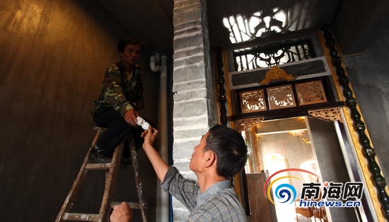 工人們在博鰲鎮(zhèn)一家家庭旅館粉刷墻面。據(jù)該店老板介紹,該店將趕在年會召開前開張迎客(南海網(wǎng)記者張茂攝)