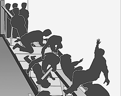 記者采訪到阿克蘇市五校六年級(3)班學生亞里昆·亞生,他說:“第二節課后,同學們下課了,大家去做課間操,有10多個學生沿著樓梯的扶手往下滑,扶手突然歪了,有幾個同學被壓到下邊了!